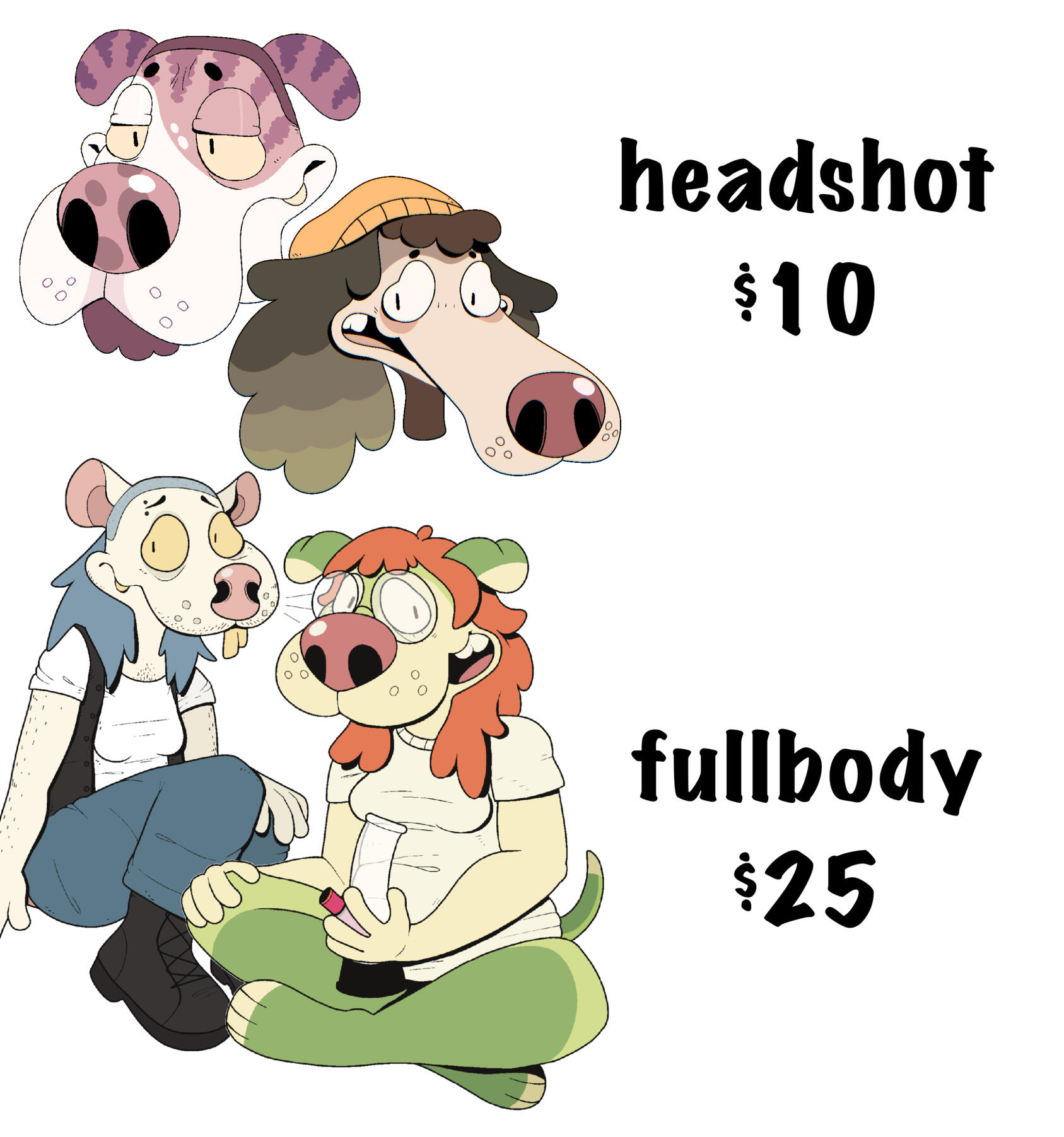 Headshots: $10 ⋆ Fullbody: $25Art of your character in a bright, very toony style